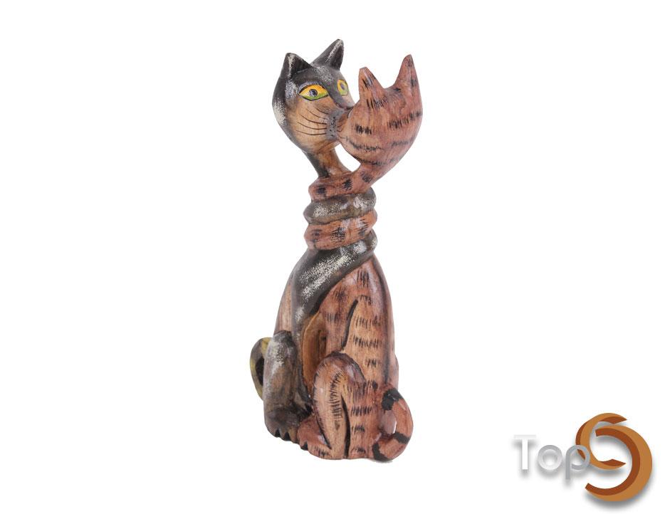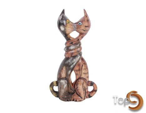 A miniature wooden 2 head twisted cat