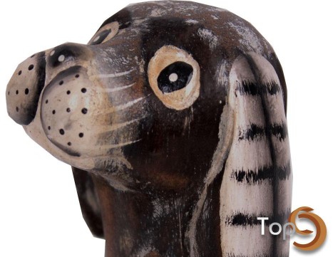 Description A miniature wooden antique sitting dog