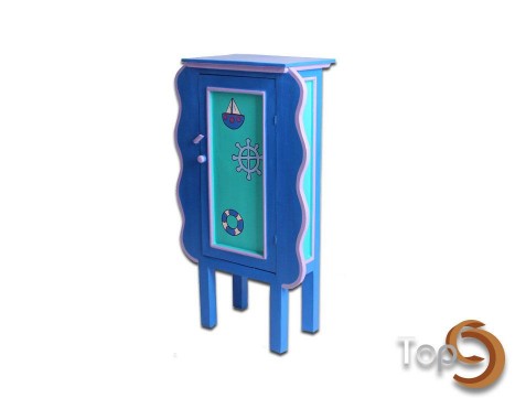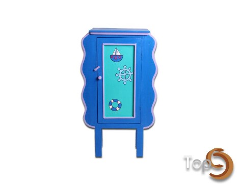 A curved children cabinet with colorful motif