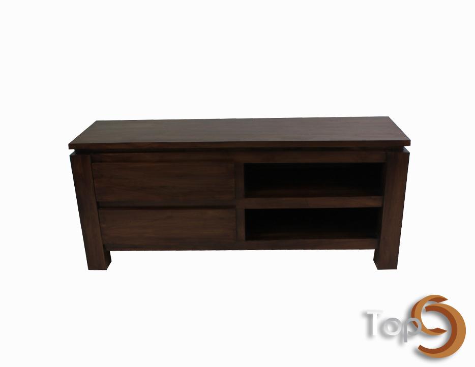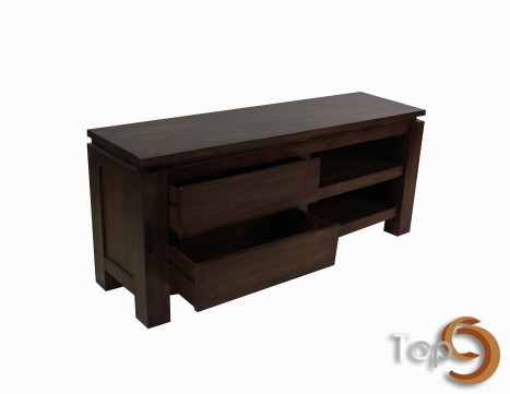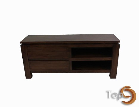 A TV cabinet with two simple drawers and two shelves