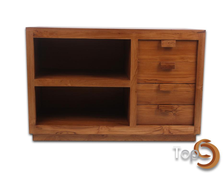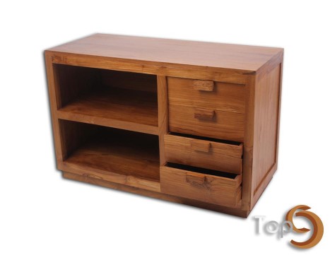 A cabinet with 4 drawers and 2 shelves