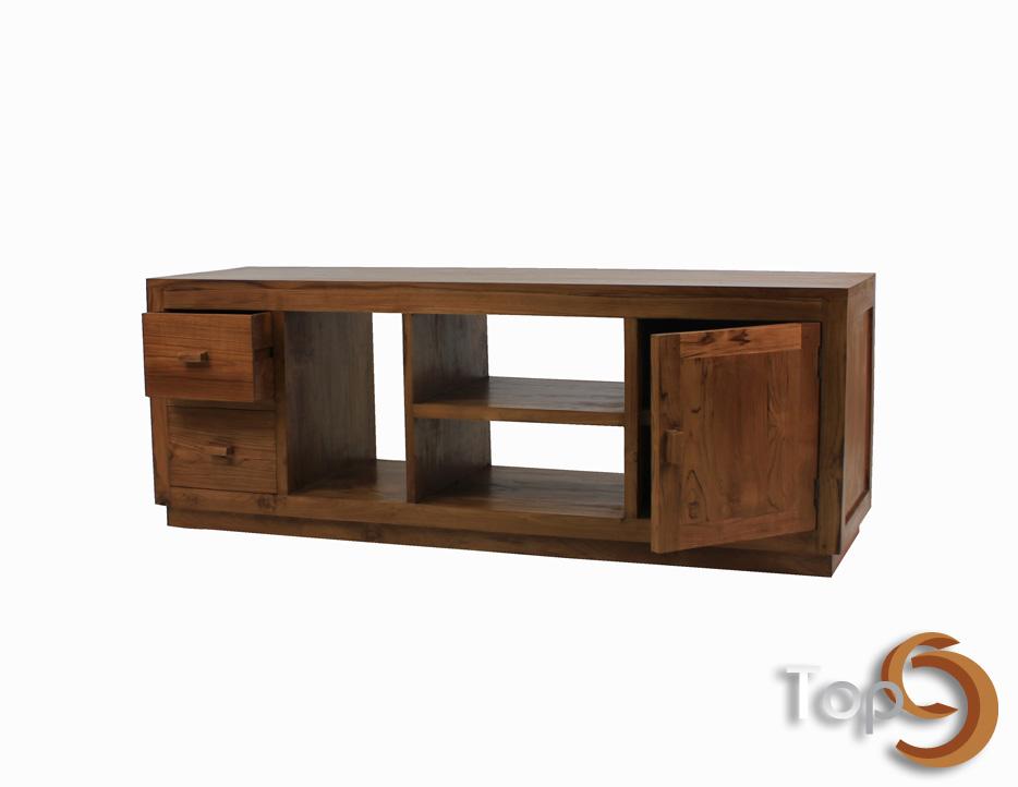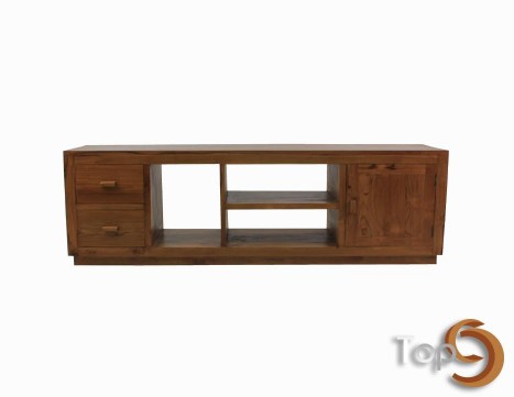 A TV cabinet with two drawers, three shelves and a door