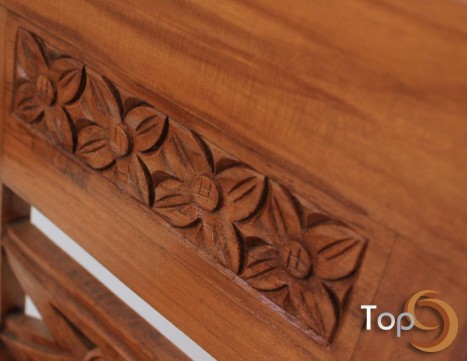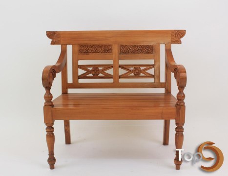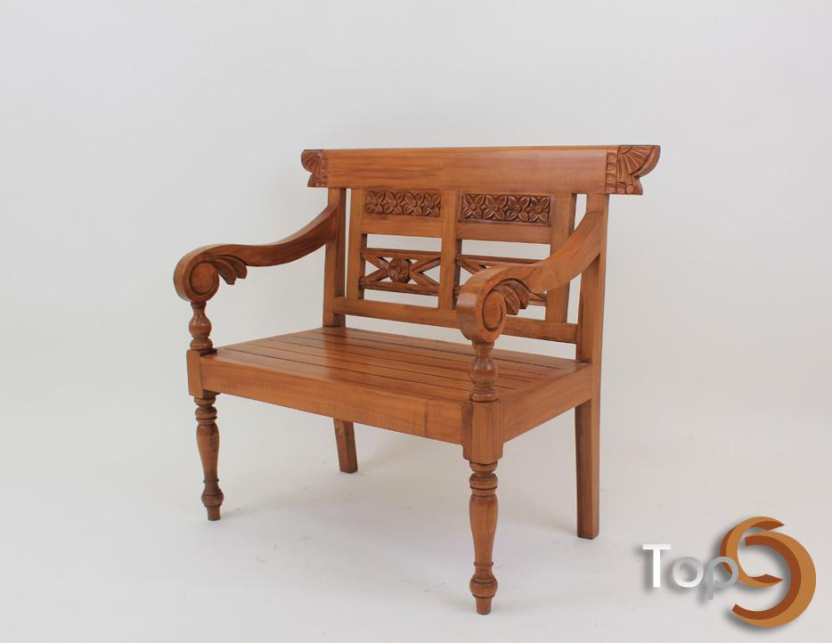 A Javanese ornamented children bench with front cabriole legs and spiral arm bench. Typical bench from Semarang, Central Java. Made from Solid Teakwood