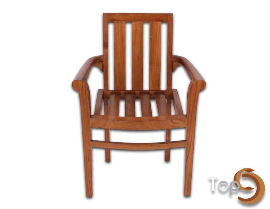 A square chair with handrest and slat backrest