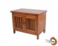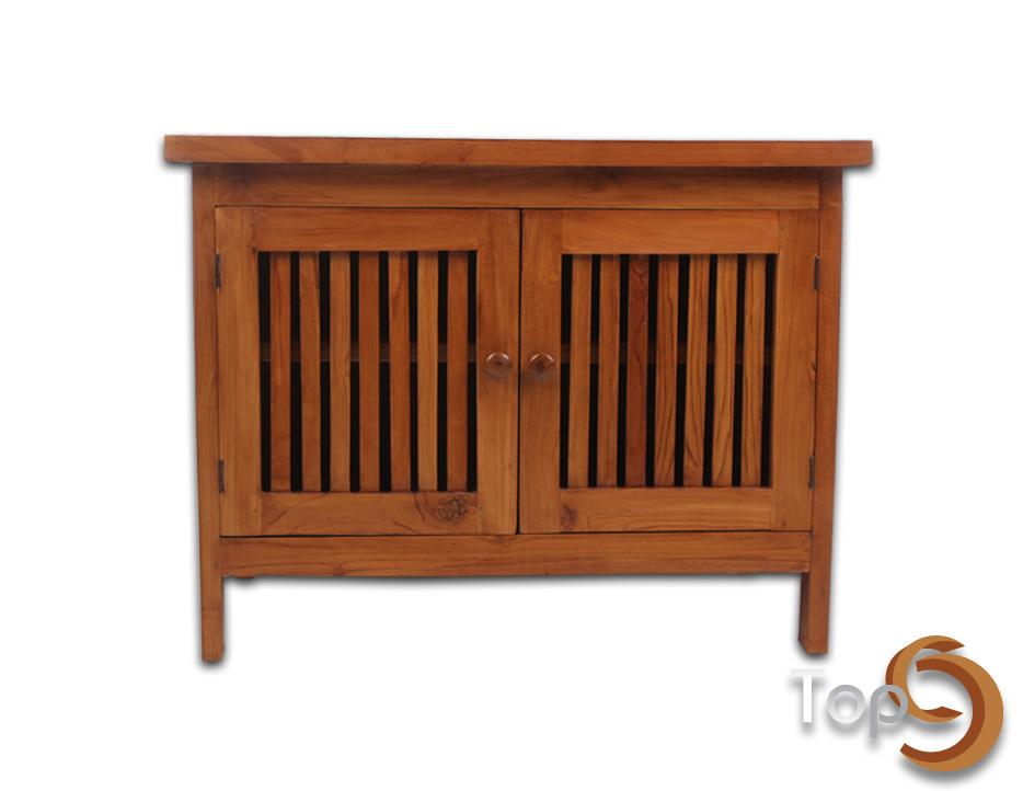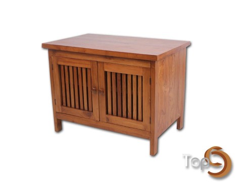 A cabinet with 2 slat doors
