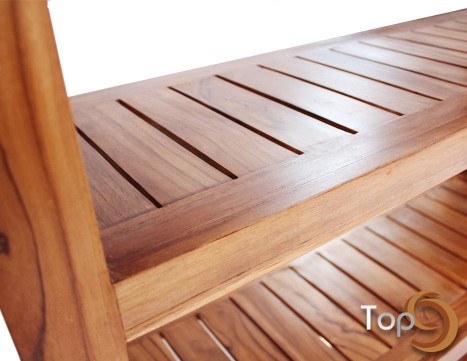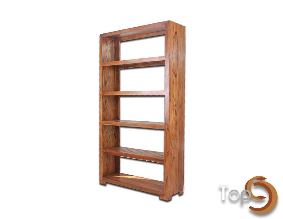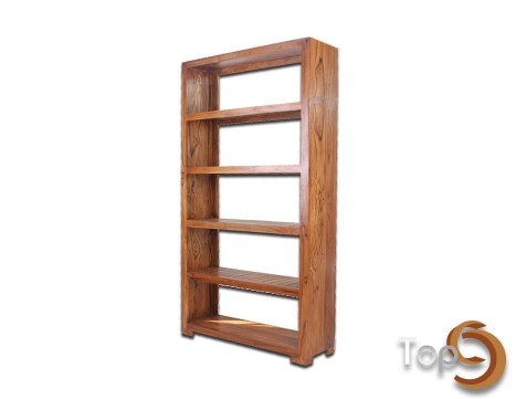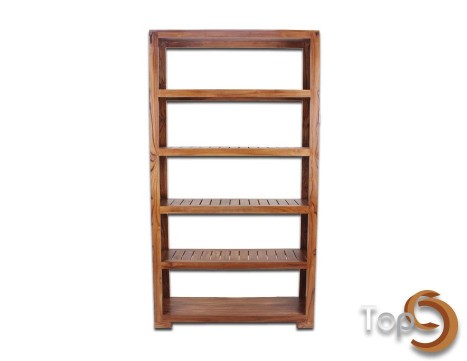 A showcase for magazines or books with 5 shelves and line hole accent